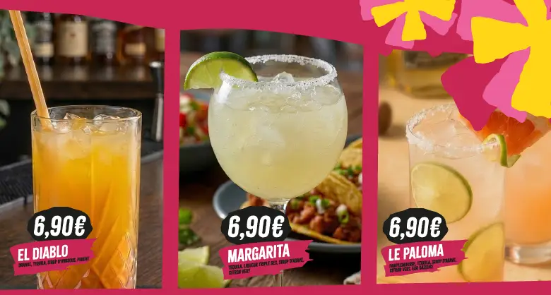 Prêts pour un aller simple direction le Mexique ? Composez votre salade préférée, faites grimper la température avec notre supplément chaud exclusif, et sirotez l’une de nos nouvelles boissons d’inspiration latine. C’est frais, c’est coloré, c’est 100% CHIDO !