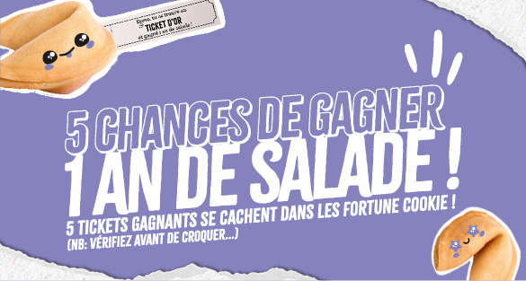 Les conditions générales d’utilisation (CGU) de La Carte Fidélité Salad&Co peuvent être consultées sur le site Internet www.saladandco.fr ou par demande écrite l’adresse suivante : Salad&Co, Service Marketing, 4 rue de l’Espoir, 59260 LEZENNES.