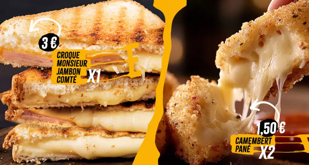 + 1 supplément chaud (croque Monsieur ou camembert pané)